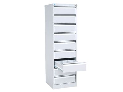 Шкаф картотечный ШК-9 42 200 ₽ В корзину В корзину Размеры (ВхШхГ): 1730x525x585 мм Размеры (ВхШхГ): 1730x525x585 мм Описание Описание Предназначен для хранения документов формата А5. Сварной корпус. Девять выдвижных ящиков. Ящики разделены пополам перегородкой. Размер одного отделения ящика (ВхШхГ): 120х217х520 мм. Центральный замок закрывает все ящики. Возможна установка замков на каждый ящик. Телескопические направляющие позволяют выдвинуть ящик полностью. Окрашен порошковой краской. Нагрузка на ящик не должна превышать 15 кг. Производитель: Мебель-Групп.