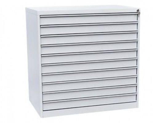 Шкаф картотечный ШК-10 формат А1 78 700 ₽ В корзину В корзину Размеры (ВхШхГ): 1000x1000x650 мм Размеры (ВхШхГ): 1000x1000x650 мм Описание Описание Предназначен для хранения чертежей формата А1. Сварной корпус. 10 выдвижных ящиков (ВхШхГ): 50х905х600 мм. Телескопические направляющие позволяют полностью выдвигать ящик. Максимальная нагрузка на ящик не более 15 кг. Центральный замок закрывает все ящики. Окрашен порошковой краской светло-серого цвета, RAL 7035. Производитель: Мебель-Групп.