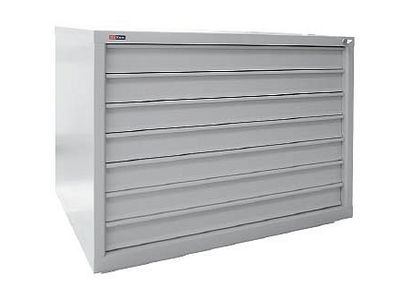 Представляет сварной металлический шкаф с 7 выдвижными ящиками (ВхШхГ): 100х918х626 мм. Допустимая нагрузка на ящик - 40 кг.