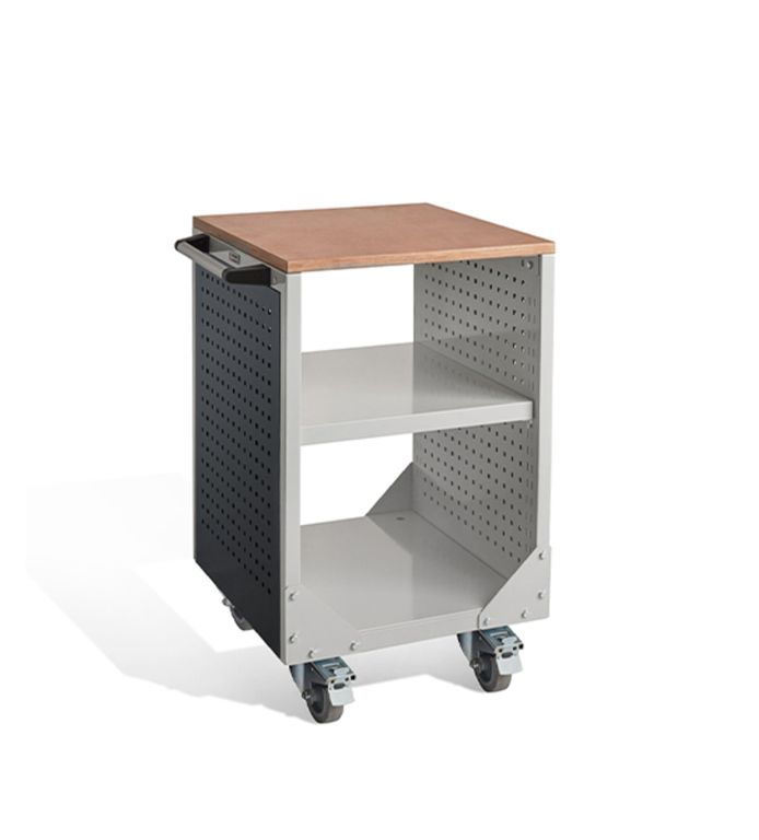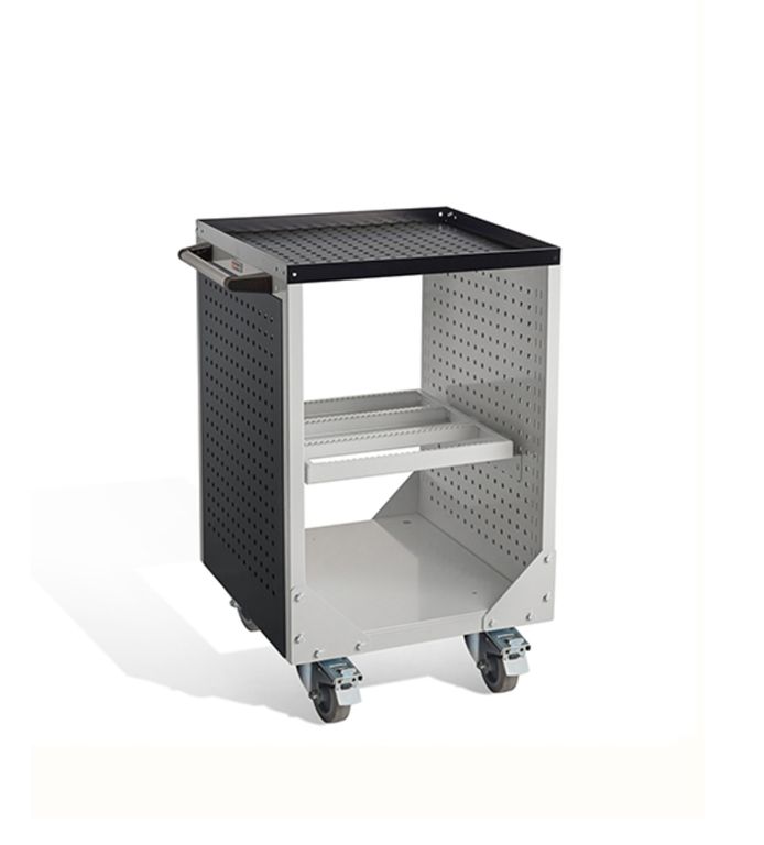 Боковые стенки представляют собой двойные перфорированные экраны с шагом перфорации 35 мм. С внешней стороны тележки на них можно установить Аксессуары к экранам (приобретаются отдельно).
