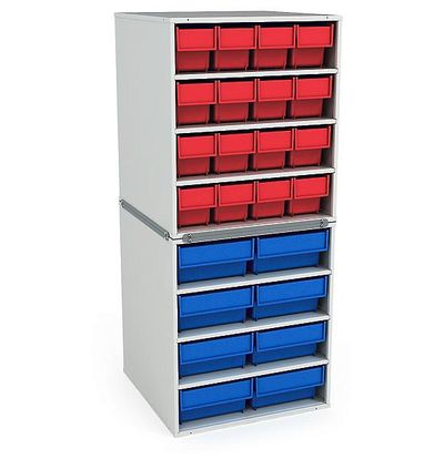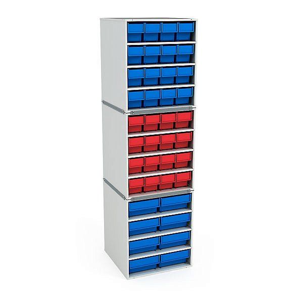 Ящики на выбор могут быть красного или синего цвета. Стенки ящиков изготовлены из пластика толщиной 3 мм. В ящики можно установить пластиковые перегородки.