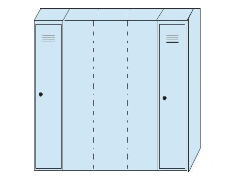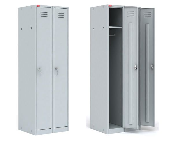 Модульный металлический шкаф ШРМ-22-М предназначен для хранения сменной одежды в производственных, спортивных и офисных помещениях. Состоит из двух боковых секций модульного ряда. Между двумя боковыми секциями можно установить любое количество дополнительных промежуточных секций ШРМ-М. Каждая секция укомплектована распашной дверцей, индивидуальным врезным замком, полкой для головного убора, перекладиной для вешалки и двумя крючками для одежды.