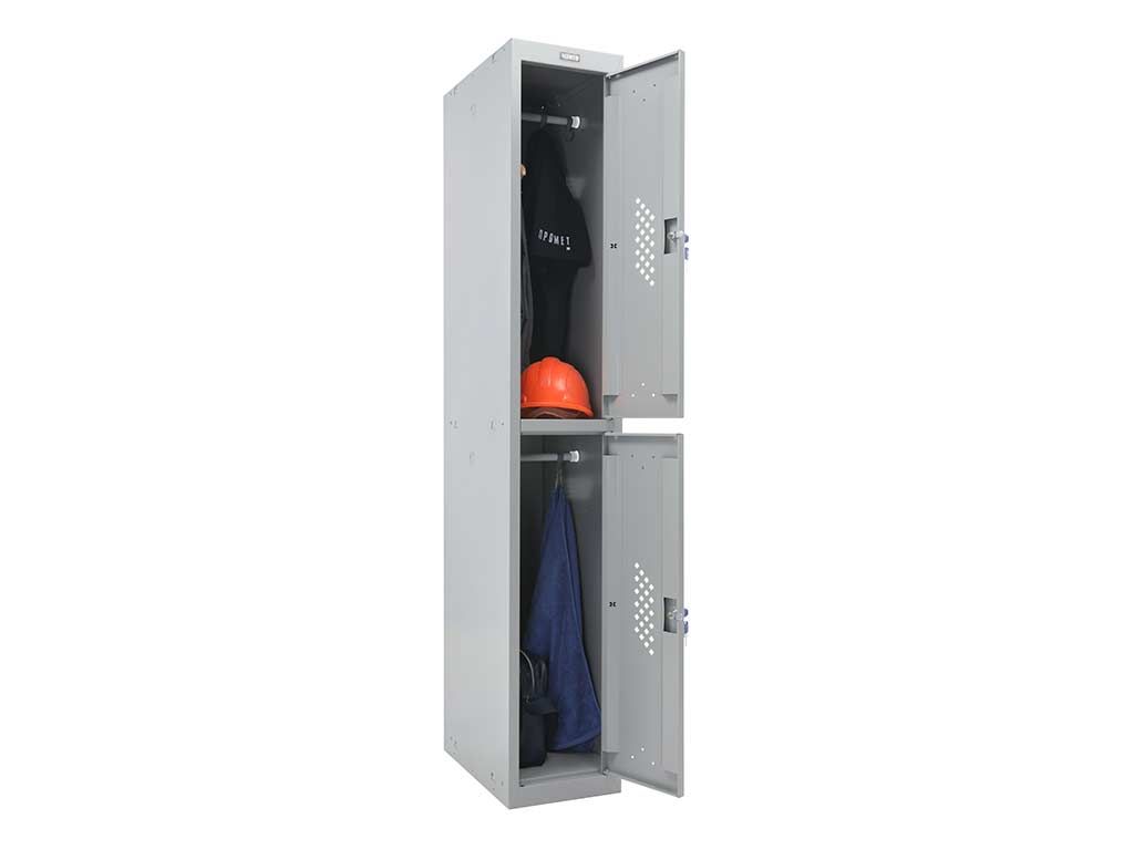 Модульный металлический шкаф ML-12-30 предназначен для хранения одежды в производственных, спортивных и других помещениях. Имеет жесткий корпус, усилен сварной рамой. Состоит из двух отделений, каждое из которых закрывается распашной дверью с ключевым замком «Практик» (2000 комбинаций).