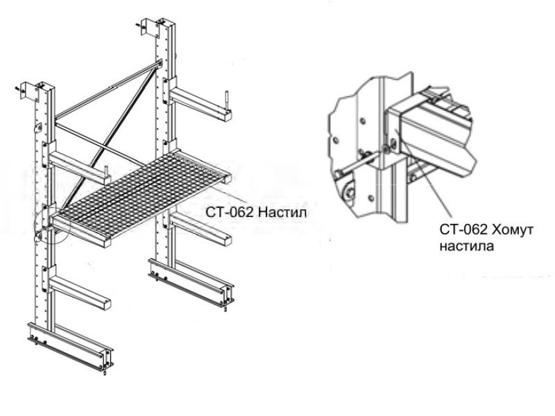 СТ-062 Настил предназначен для хранения на консольном стеллаже грузов, длиною менее 1,5 м.