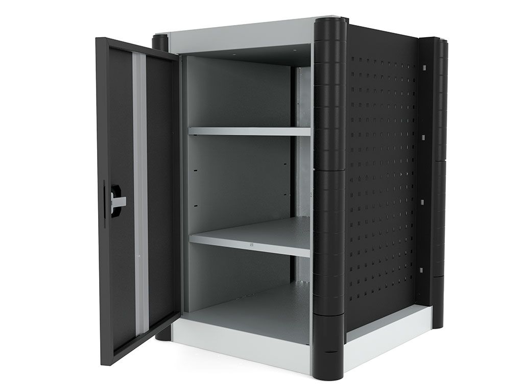 На перфорированные стенки тумбы можно установить различные аксессуары.
