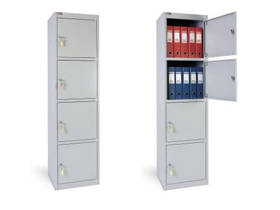 Система запирания - флажковая. Размеры секции позволяют хранить документы формата А4 в папках Корона и Дело.