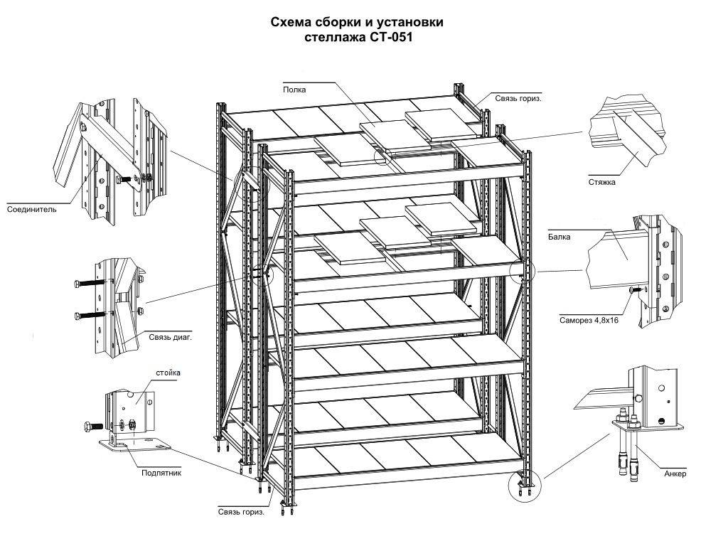 Стеллаж полочный ДиКом СТ-051 (глубина 850 мм)