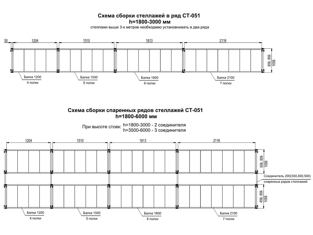 - ширина яруса: 1200/1500/1800/2100 мм