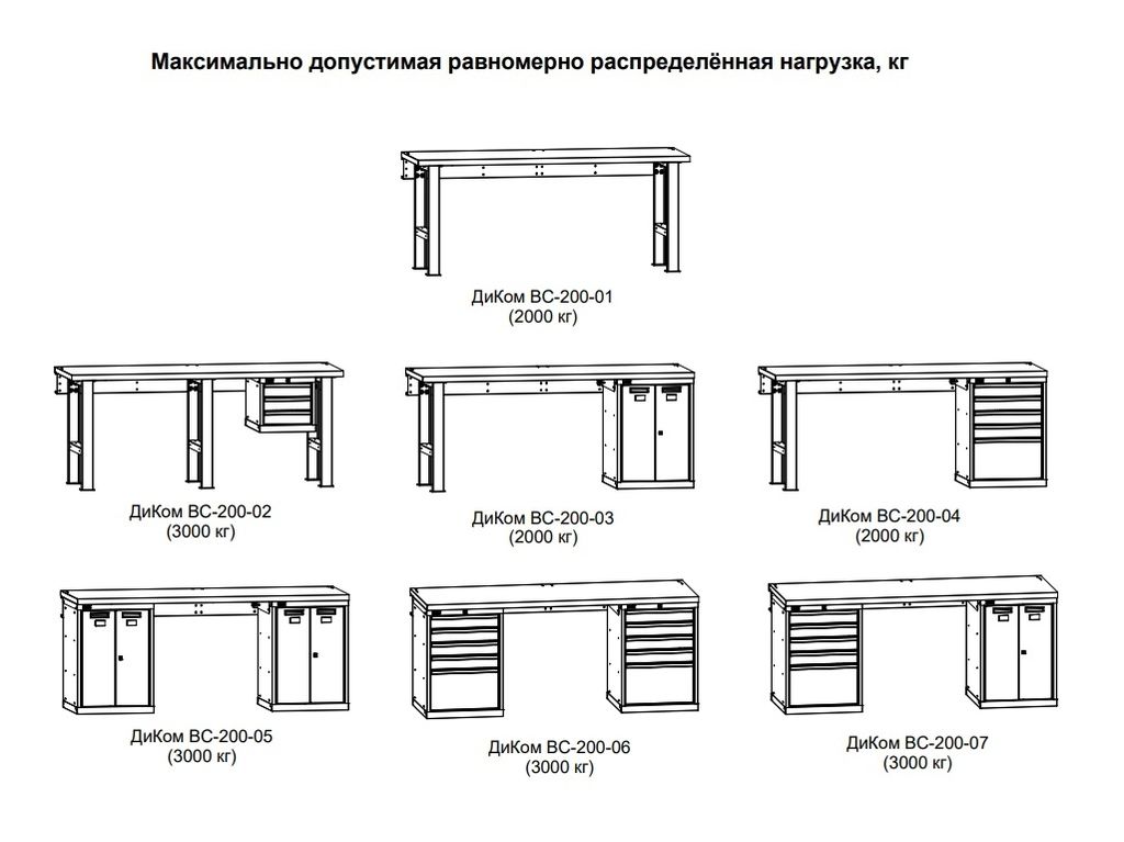 Максимальная равномерно распределенная нагрузка на верстак: 2000 - 3000 кг.
