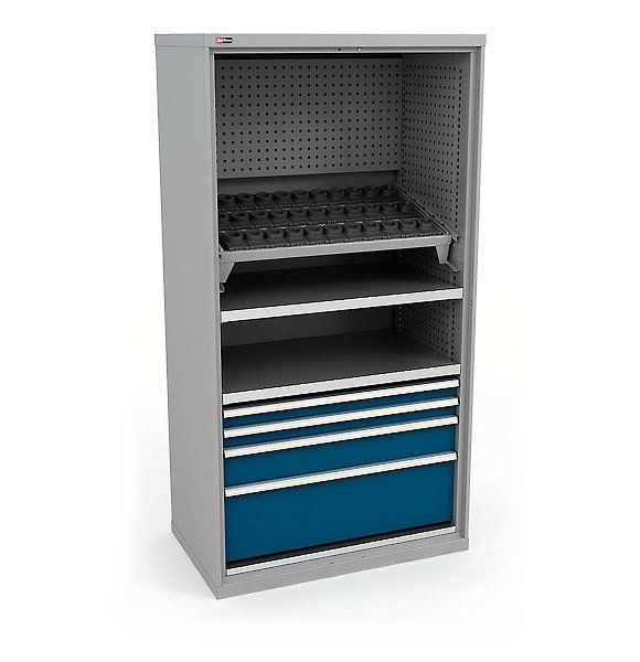 ВC-05 Ящики разного размера, ВС-05 Полка цинк, ВС Платформа выкатная, ВС Системы антиопрокидывания, ВС-053/055 Экраны боковые, ВС-03/05 Экран в тумбу, Салазки и Рамы под держатели инструмента и др. Шкаф моделируется индивидуально, с использованием перечисленных модулей.