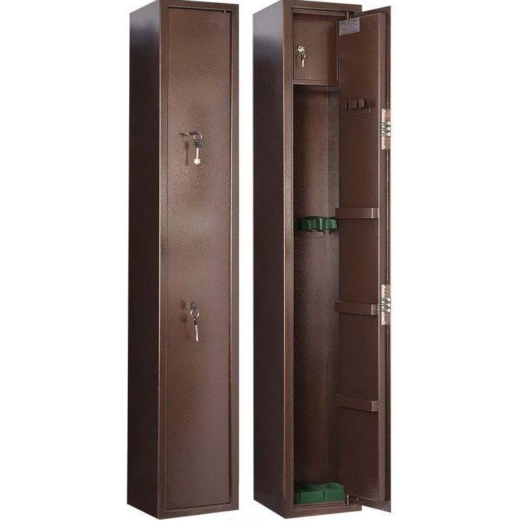 Шкаф комплектуется пластиковыми ложементами, позволяющими удобно размещать оружие внутри шкафа и сберечь его от царапин и потертостей. На двери расположены шомполодержатель, скоба и масленка. Предусмотрены отверстия для крепления шкафа к стене.