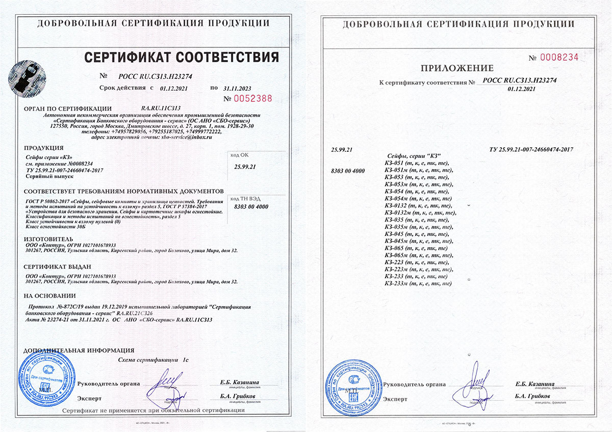 Предназначен для хранения ценностей, документов, носителей информации и обеспечивает их сохранность согласно 0 (нулевому) классу устойчивости к взлому по ГОСТ Р 50862-2017 и классу огнестойкости 30Б ГОСТ Р 57384-2017.