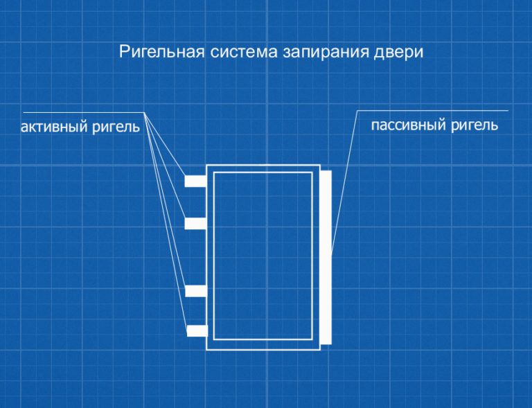 | Система запирания | ригельная - 4 активных ригеля Ø28 мм в сторону и 1 пассивный П-образный ригель со стороны петель |