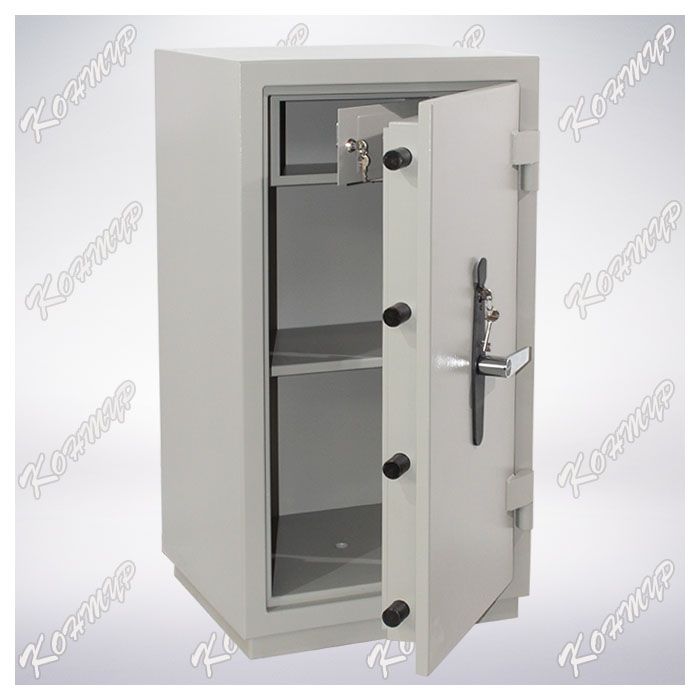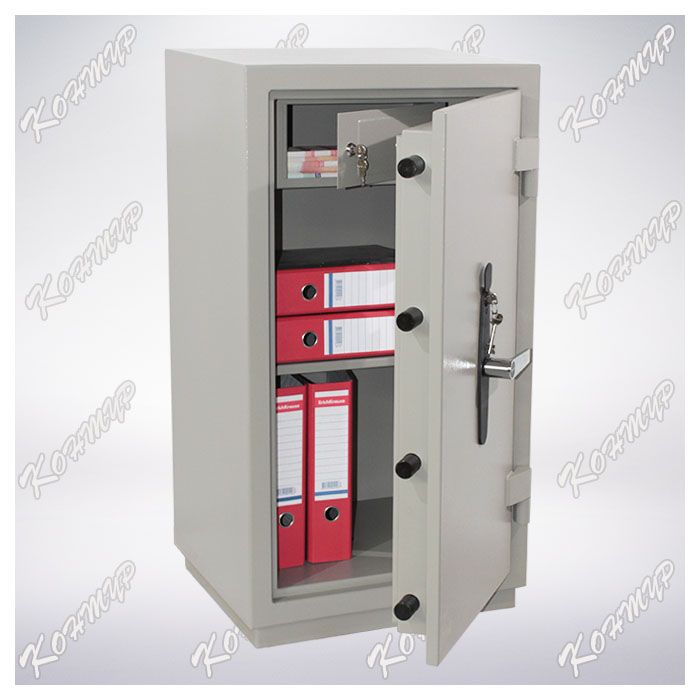 Сейф имеет сварной двухслойный каркас с наполнением бетоном специальной марки. Заполнение пространства между двумя стальными листами бетоном обеспечивает взломостойкость сейфа.