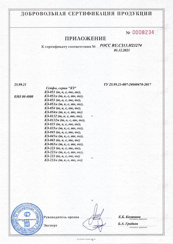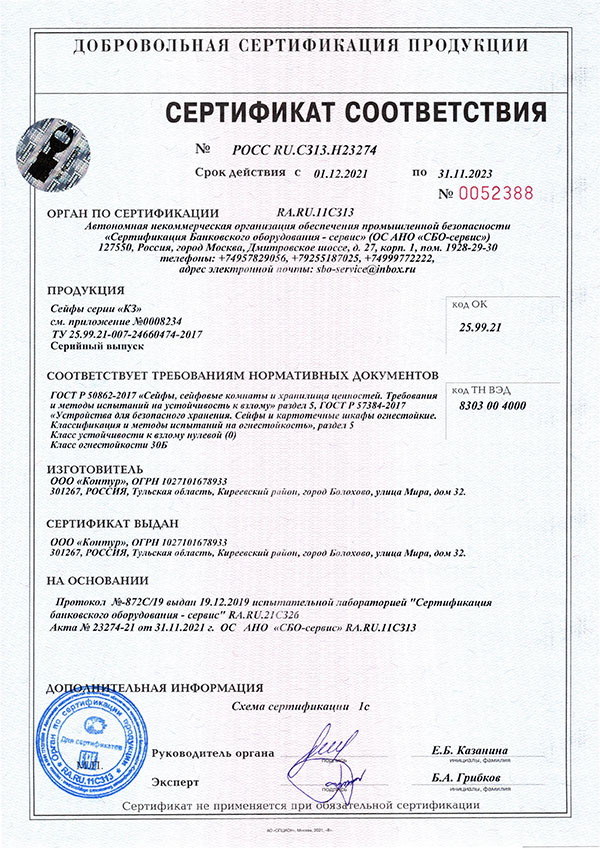Предназначен для хранения ценностей, документов, носителей информации и обеспечивает их сохранность согласно 0 (нулевому) классу устойчивости к взлому по ГОСТ Р 50862-2017 и классу огнестойкости 30Б ГОСТ Р 57384-2017.