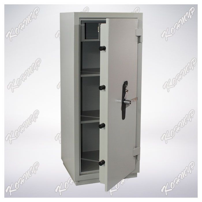 Сейф имеет сварной двухслойный каркас с наполнением бетоном специальной марки. Заполнение пространства между двумя стальными листами бетоном обеспечивает взломостойкость сейфа.