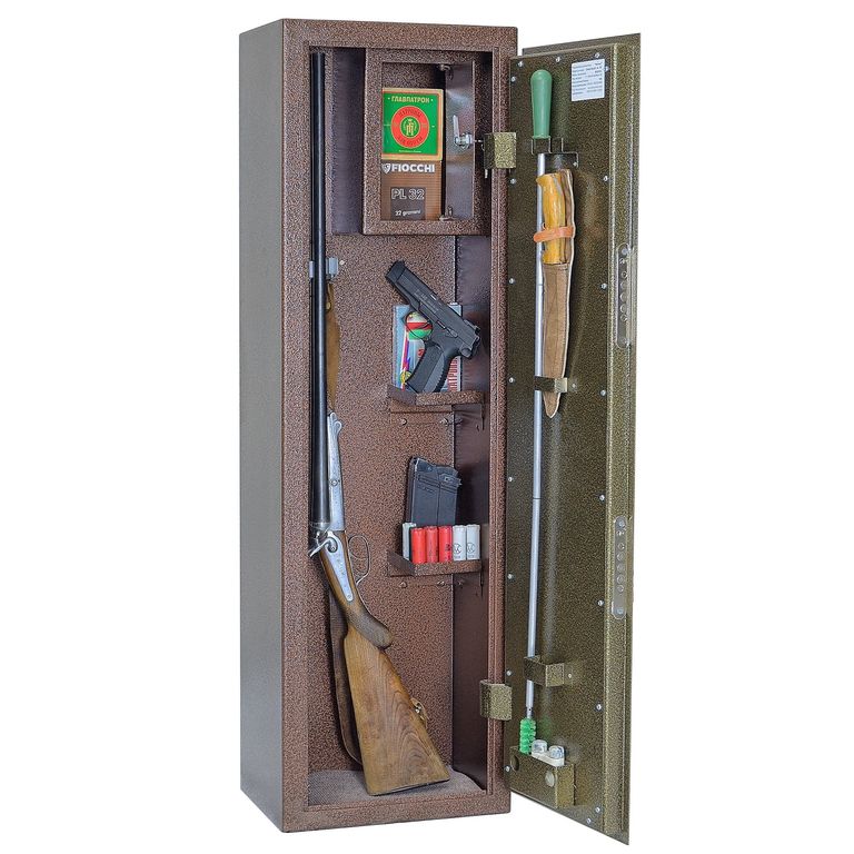 Сейф оснащен ложементами на 2 ствола, 2 съемными полками и отделением под патроны. Ложементы - металлические держатели с резиновыми роликами. Максимальная высота устанавливаемого оружия - 1130 мм.