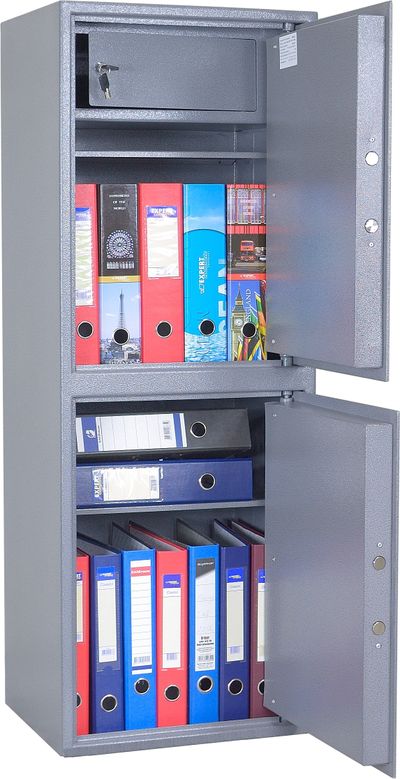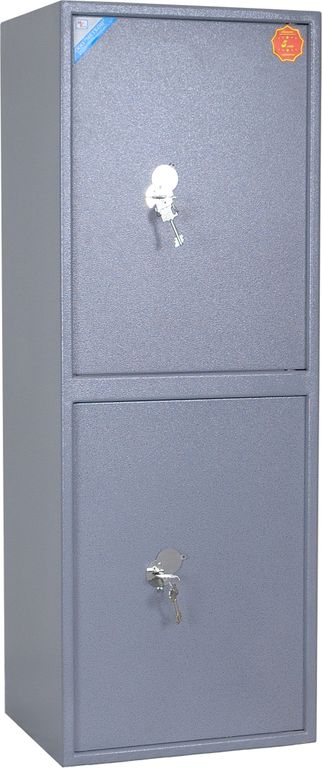 Сейф - двухсекционный, толщина металла корпуса - 2 мм, дверей - 5 мм.