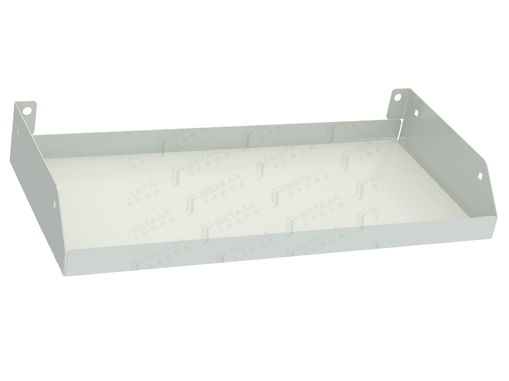 Полка поставляется заказчику в полусогнутом виде, на полке выполнены два ребра (гиба), один по лицевой, один по задней стороне. Остальные два ребра (гиба) по боковым сторонам полки догибаются вручную потребителем, для этого предусмотрена специальная перфорация в местах формирования гиба.