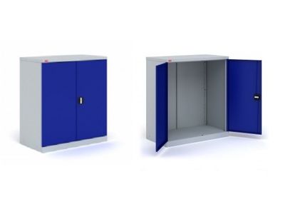 Корпус шкафа окрашен в серый (RAL 7035), двери в синий (RAL 5002) цвет. Покрытие - полимерное.