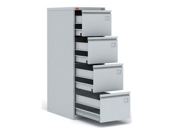 Представляет сборно-разборную металлическую конструкцию. Имеет 4 выдвижных ящика, которые запираются на общий замок. Выдвижение ящиков осуществляется с помощью телескопических направляющих. Оборудован антиопрокидывающим устройством.