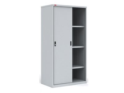 Шкаф односекционный, двухдверный, изготовлен из металла.