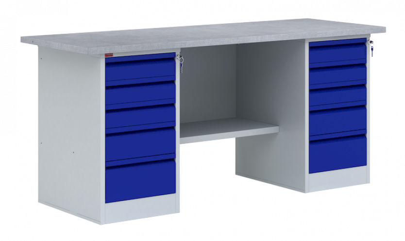 - две тумбы верстачных Т-2 с пятью выдвижными ящиками (нагрузка 30 кг), запирающимися на замок или тумба верстачная Т-2Т с пятью ящиками на телескопических направляющих.