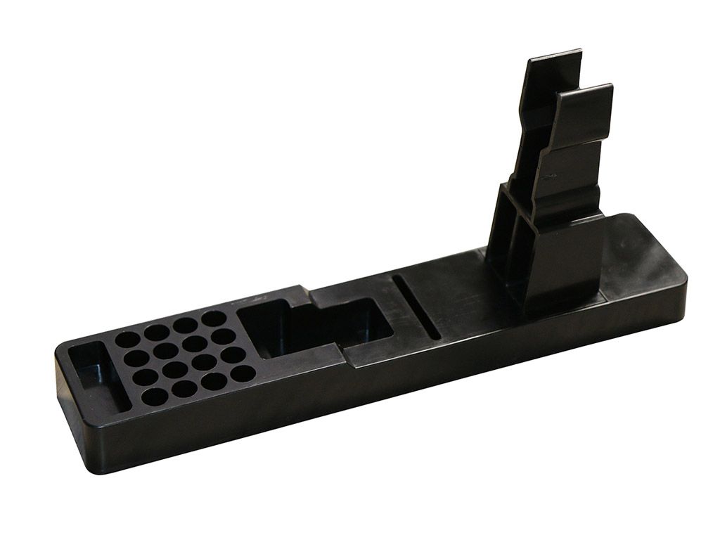 Подставка предназначена для установки и сохранения фиксированного положения пистолетов и боеприпасов при хранении.