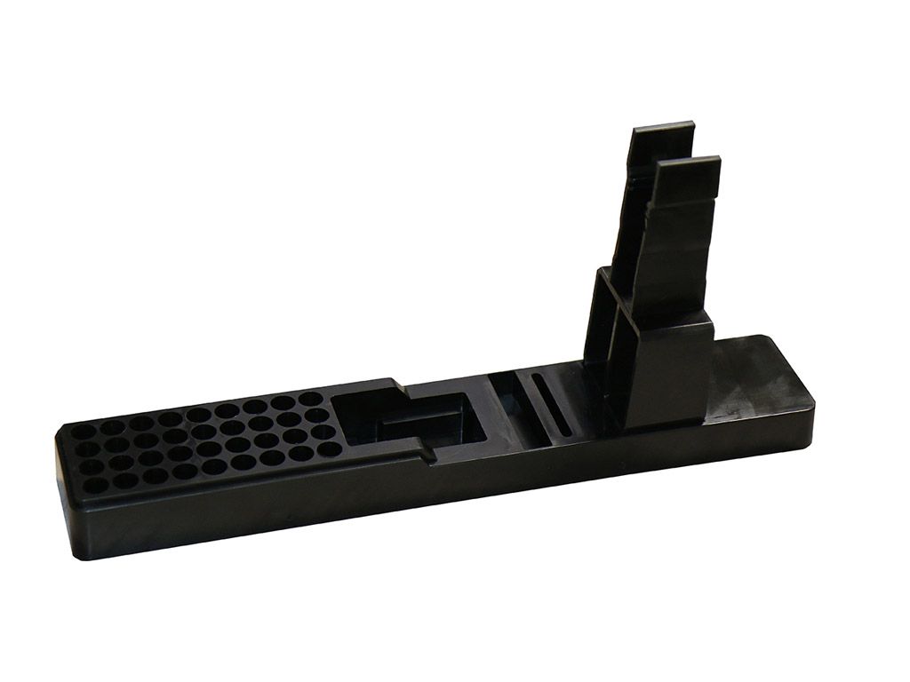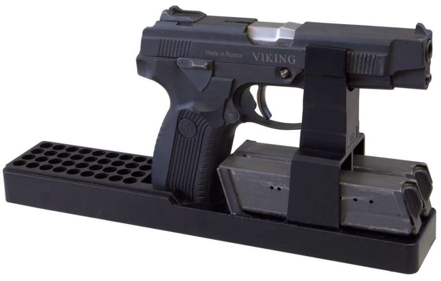 Подставка предназначена для установки и сохранения фиксированного положения пистолетов и боеприпасов при хранении.