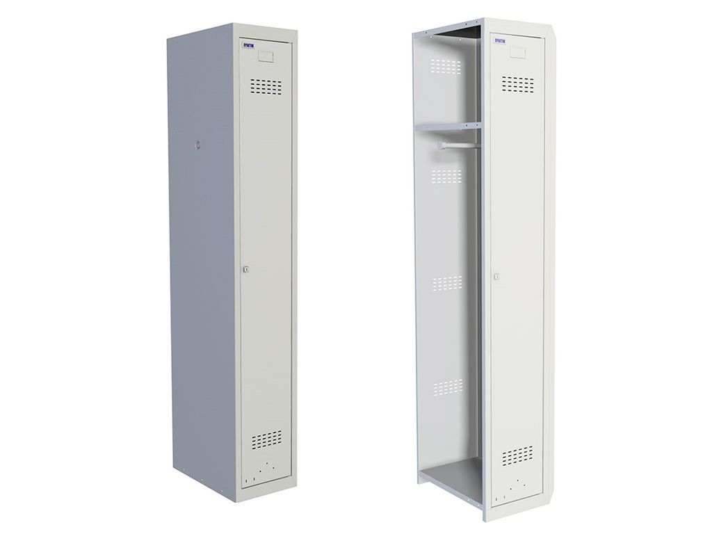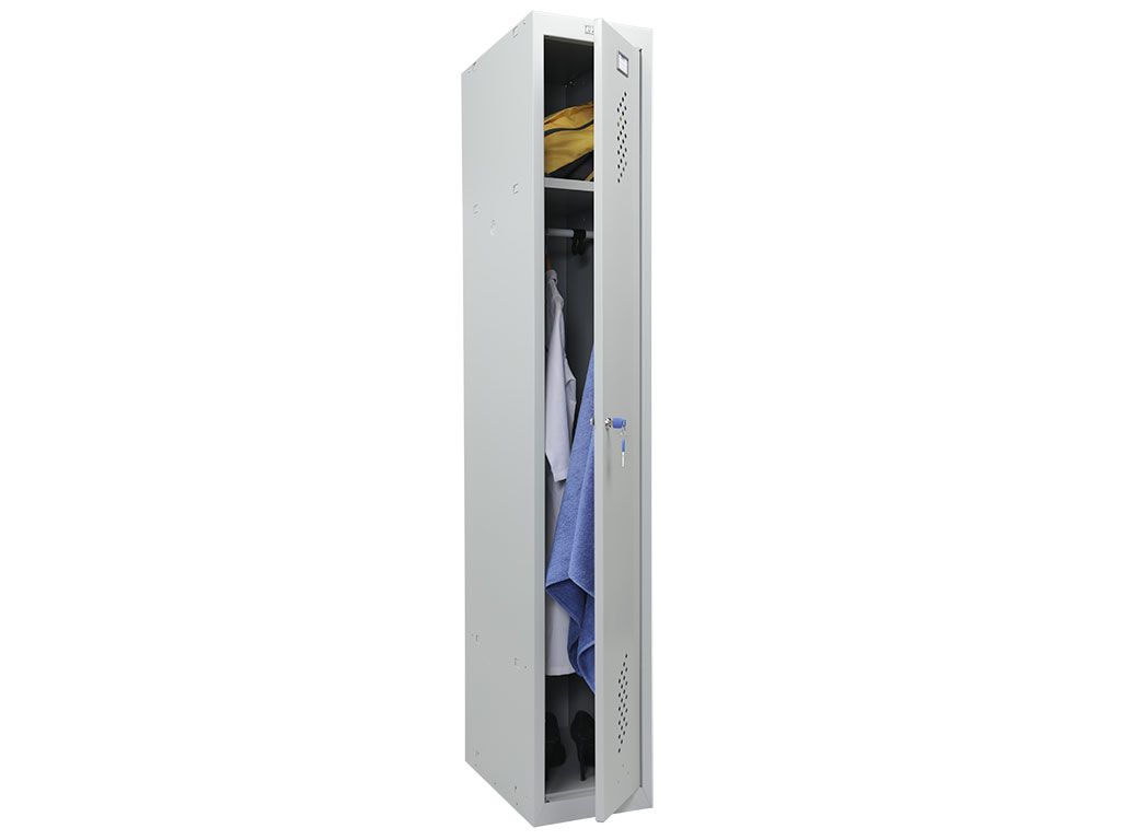 Каждая секция укомплектована полкой для головных уборов, перекладиной, двумя крючками для одежды, имеет вентиляционные отверстия в двери и задней стенке, в дверь устанавливается ключевой замок «Практик» (2000 комбинаций).