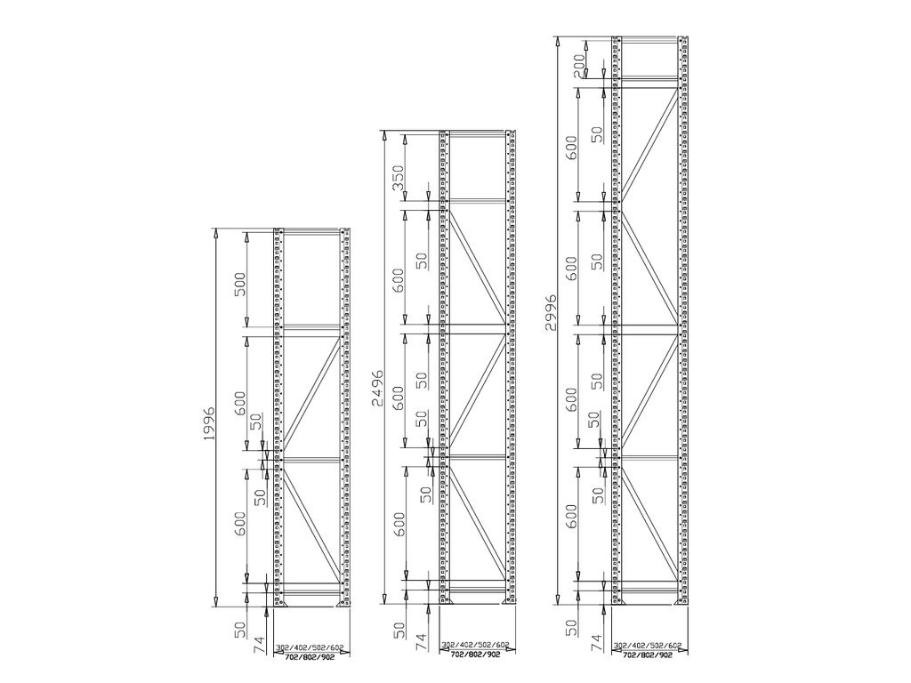 Глубина: 302 / 402 / 502 / 602 / 802 / 902 / 1002 мм