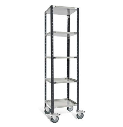 Укомплектована 5 полками с отбортовкой, которые могут регулироваться по высоте с шагом 50 мм.