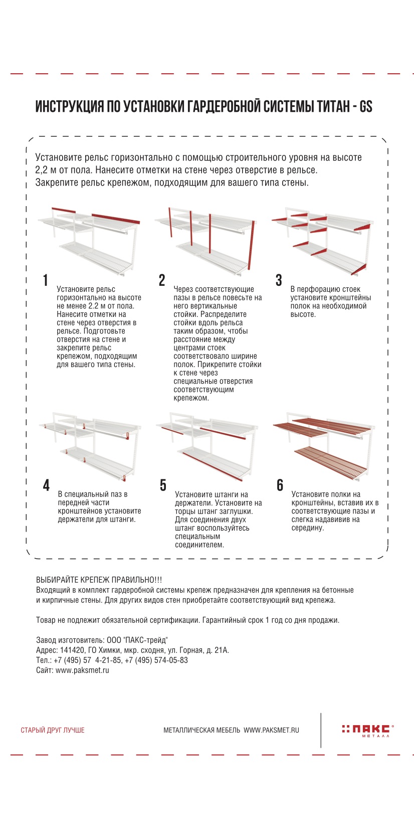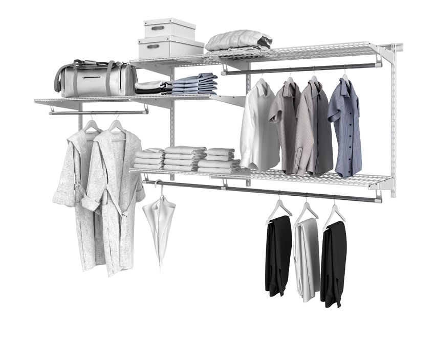 Базовый комплект гардеробной системы Титан-GS-350 - это готовое решение для квартиры, дачи, гаража, обеспечивающее удобное хранение вещей. Система собирается в 5 разных конфигурациях, что позволяет подстраивать ее под размеры помещения и ориентироваться на личные пожелания по расположению отдельных элементов.
