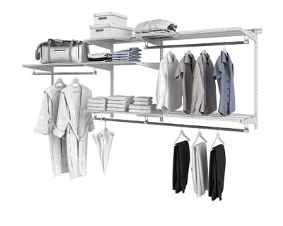 Базовый комплект гардеробной системы Титан-GS-450 - это готовое решение для квартиры, дачи, гаража, обеспечивающее удобное хранение вещей. Система собирается в 5 разных конфигурациях, что позволяет подстраивать ее под размеры помещения и ориентироваться на личные пожелания по расположению отдельных элементов.